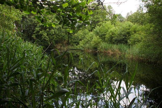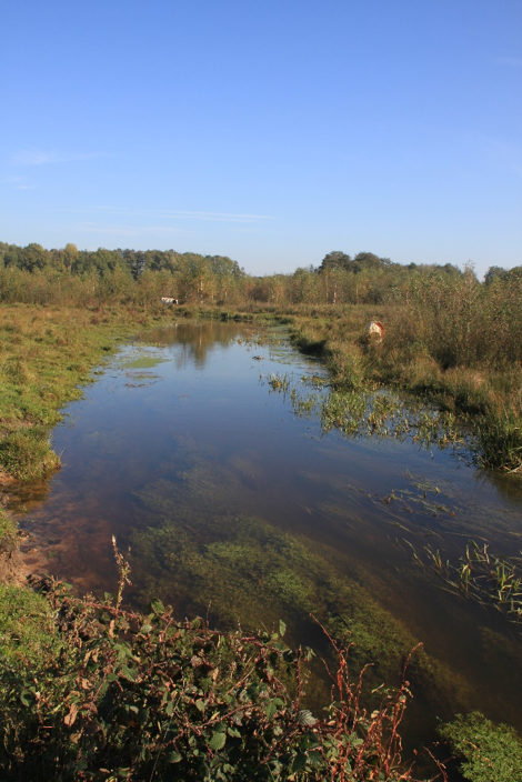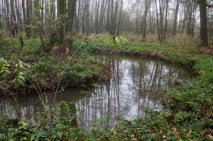 In het moerasbos is tijdens een ruil-verkaveling in de jaren ‘60 van de vorige eeuw als natuurcompensatie een eendenvijver aangelegd (afbeelding 14).