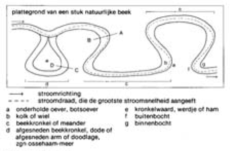 Het dwarsprofiel van een natuurlijke laaglandbeek is asymmetrisch met zandbanken, overhangende oevers, aangeslibde rustig stromende tot stilstaande plekken en plaatselijk stroomversnellingen met fijne grindbankjes.