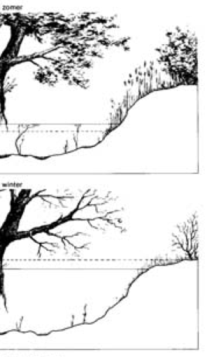 Bij de term droge bos willen we wel een opmerking plaatsen: de grondwaterstand in het ‘droge bos’ is behoorlijk hoog. We noemen dit bos het droge bos omdat het relatief droger is dan de omringende gronden (weiland, oever en moerasbos). Het droge bos is echter geen typisch droog bos, aangeplant met grove den, zoals dat in Zuid Nederland op veel plaatsen voorkomt.