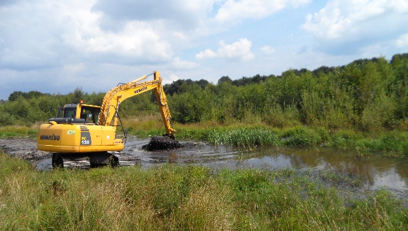 De tijdens de graafwerkzaamheden vrijkomende grond zijn om de vijver gedeponeerd.