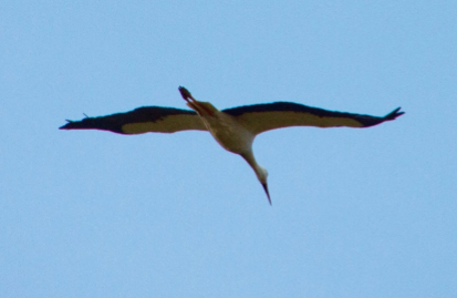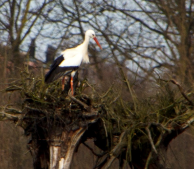 Ons hoogtepunt is de aankomst van een ooievaar in het gebied, die op zoek is naar een geschikte nestplaats (afbeeldingen 4 en 5). Hij landt op de drie omgekeerde bomen, die de samenwerking symboliseren tussen de gemeente, het waterschap en Staatsbosbeheer. Deze bomen worden ook wel het ooievaarsnest genoemd, omdat de wortelkluiten op een ooievaarsnest lijken. Helaas is het nest niet hoog genoeg en is deze imposante vogel niet gebleven om daadwerkelijk te nestelen.