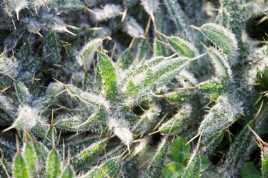 Ook planten hebben overwinteringsstrategieën. Veel planten sterven af, maar hebben zich al voortgeplant in de vorm van zaden. Andere planten hebben voedsel opgeslagen in dikke wortels, knollen of bollen. Er zijn ook planten die overwinteren in de vorm van een rozet, dicht bij de grond (afbeelding 3). Distels zijn hiervan een goed voorbeeld.